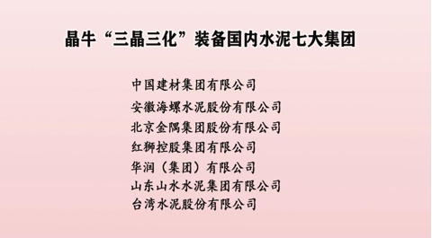 四、中國十大水泥集團中的七大集團分布的26個省的300條生產線的20多個部位裝備了晶牛“三晶三化”設備,均收到理想效果
