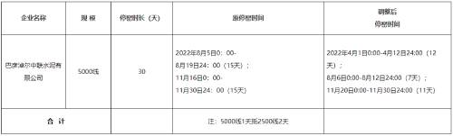 4月13日,內蒙古工信廳發布《關于對巴彥淖爾中聯水泥有限公司錯峰置換停窯時間予以調整的公示》稱,按照相關通知,將巴彥淖爾中聯水泥有限公司與烏海及周邊地區電石渣企業具體置換時間予以調整: