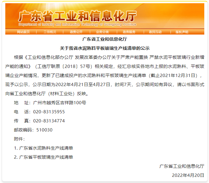 4月20日,廣東省工業和信息化廳公布了《2021年廣東省水泥