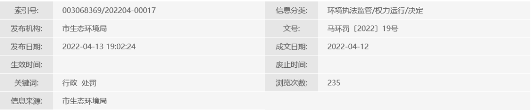 我局于2022年3月30日以《行政處罰事先(聽證)告知書》(馬環(huán)罰告〔2022〕15號)告知你公司違法事實(shí)、處罰依據(jù)和擬作出的處罰決定,并告知你公司有權(quán)進(jìn)行陳述、申辯和要求聽證。你公司在規(guī)定期限內(nèi)未提出陳述申辯意見,未提出聽證申請。