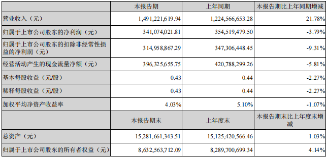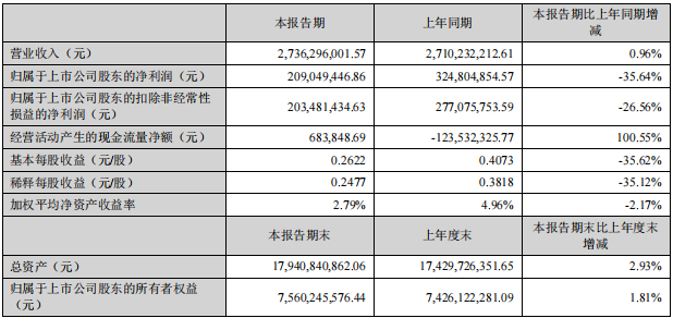 同日,華新水泥發(fā)布的2022年第一季度報告顯示 ,一季度華新水泥實現(xiàn)營業(yè)收入65.31億元,同比增長5.52%;歸屬于上市公司股東的凈利潤6.72億元,同比減少8.51%;歸屬于上市公司股東的扣除非經(jīng)常性損益的凈利潤6.5億元,同比減少10.64%。