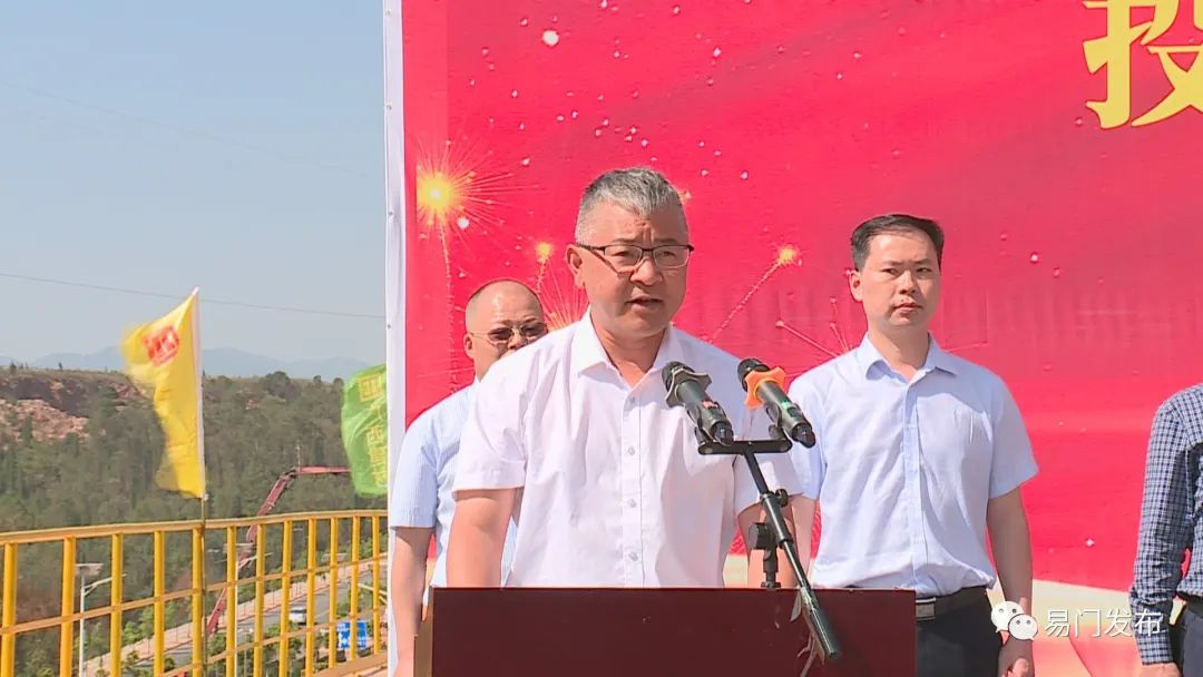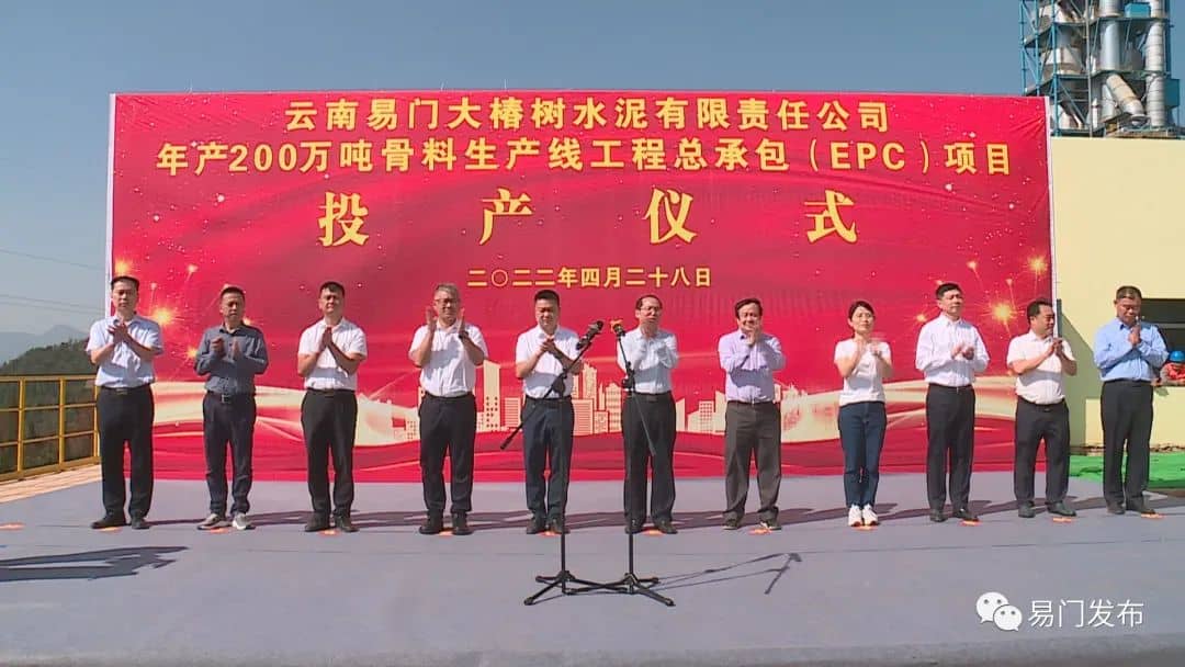 縣委書記王華宣布云南易門大椿樹水泥有限責任公司年產200萬噸骨料生產線項目正式投產。