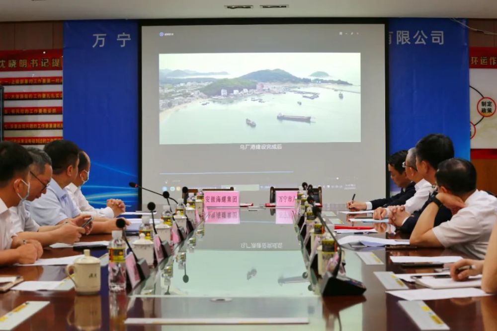 簽約儀式前,雙方共同觀看了萬寧市宣傳片,并就萬寧培訓康養中心項目、山根鎮水泥包裝廠項目、垃圾(生物質)發電項目、海上風電項目、港口建設項目等進行交流,對雙方的合作意向及下一步共同發展進行座談探討。