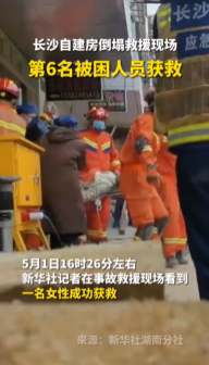 據(jù)央視新聞直播,5月1日下午,在長(zhǎng)沙望城區(qū)“4.29”居民自建房倒塌事故現(xiàn)場(chǎng),經(jīng)過(guò)50多個(gè)小時(shí)的救援,第6名被困人員被救出。據(jù)悉,該名被困人員是一名女性,在4月30日下午2點(diǎn)多被發(fā)現(xiàn)。