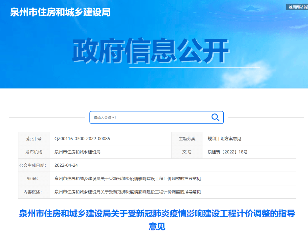 4月24日,泉州市住建局發(fā)布了《關(guān)于受新冠肺炎疫情影響建設(shè)工程計價調(diào)整的指導(dǎo)意見》。