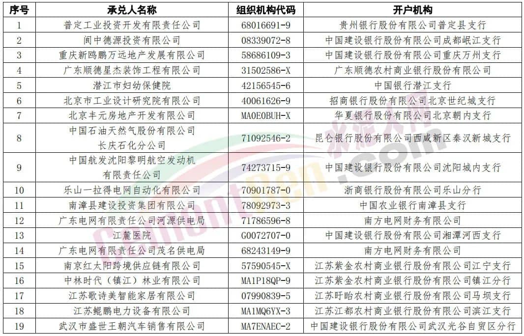 19家企業承兌人信息與工商登記信息不一致,或存在假冒商票問題