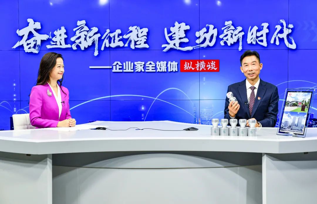 4月28日,媧石集團黨委書記、董事長魏華山(右)做客湖北日報企業家全媒體縱橫談。