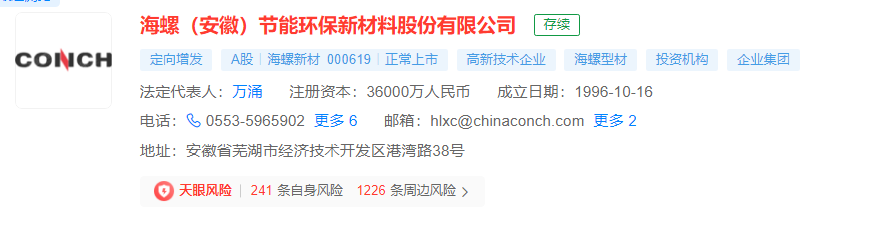 天眼查顯示,海螺建材成立于2018年8月31日,法定代表人為王志明,注冊資本為5000萬元人民幣。公司經營范圍含水泥制品、鋼結構構件、輕質建筑材料生產、加工等。