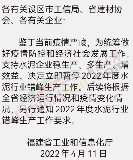 據(jù)水泥人網(wǎng)此前消息,本月11日山東省水泥協(xié)會(huì)剛剛發(fā)布了5月21日開啟夏季錯(cuò)峰的通知。