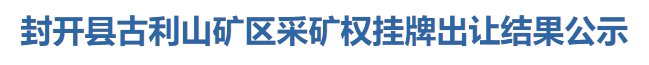 根據《國土資源部關于印發〈礦業權交易規則〉的通知》(國土資規〔2017〕7號)、《廣東省探礦權采礦權招標拍賣掛牌出讓管理辦法》(粵國土資法規發〔2010〕58號)等文件規定,現對廣東省封開縣古利山礦區采礦權掛牌出讓交易結果公示如下: