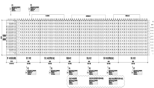 1.1通過(guò)對(duì)篦冷機(jī)篦板的配風(fēng)計(jì)算、篦板的風(fēng)載及風(fēng)壓分布進(jìn)行分析,目前篦冷機(jī)配風(fēng)不合理,需更換4臺(tái)篦冷機(jī)冷卻風(fēng)機(jī)。(如下圖)