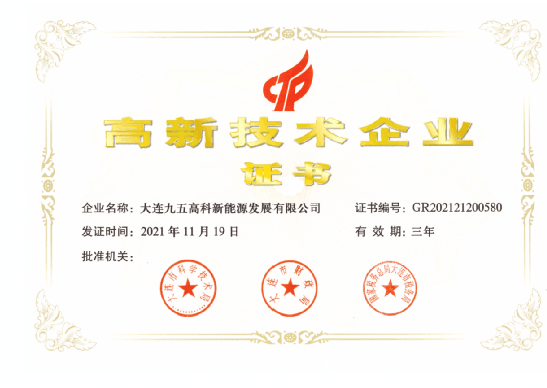 大連九五高科新能源發(fā)展有限公司多項(xiàng)余熱發(fā)電相關(guān)專利技術(shù),且榮獲了高新技術(shù)企業(yè)證書。