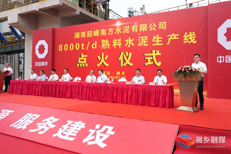 趙新文代表湘鄉市委、市政府對項目點火投產表示熱烈祝賀。他指出,韶峰南方8000t/d熟料水泥生產線的點火投產,是韶峰南方打造新型“航母”的一次嶄新啟航,是湘鄉矢志不渝推動項目建設的一個最美縮影,更是全市優化營商環境的一次生動實踐。湘鄉將把優化營商環境作為“一號工程”,大力實施“115”工程,深化“狠抓落實年”行動,全力打造便捷高效的政務環境、競爭有序的市場環境、安商富商的政策環境、公平公正的法治環境、干事創業的社會環境,助力企業提質增效。