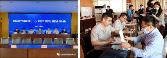 5月28日,山西臨汾市鋼鐵、水泥產需對接洽談會在晉南集團召開。9家鋼鐵、水泥生產供應企業、10家重點項目建設單位、8家交通運輸項目建設單位、32家市政及房地產項目建設單位參加洽談會。
