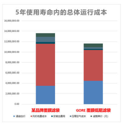 普通的濾袋通常是 24個月更換一次,戈爾的低阻濾袋按五年(60個月)壽命計算,理論上看可節省近2倍的成本。