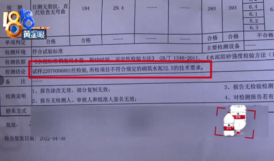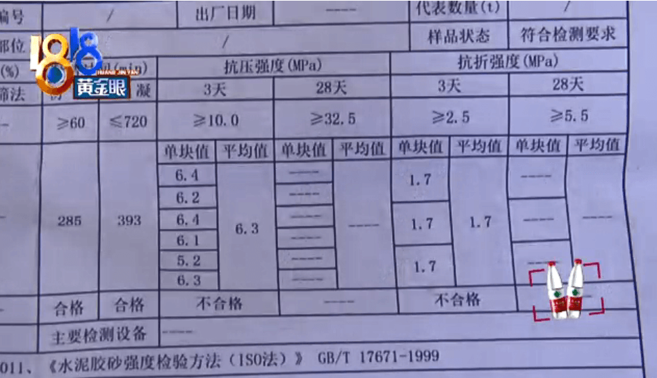 檢測結果顯示,送檢的水泥抗壓、抗折強度不合格,結論是“試樣經檢驗所檢項目不符合規定的砌筑水泥32.5的技術要求。”