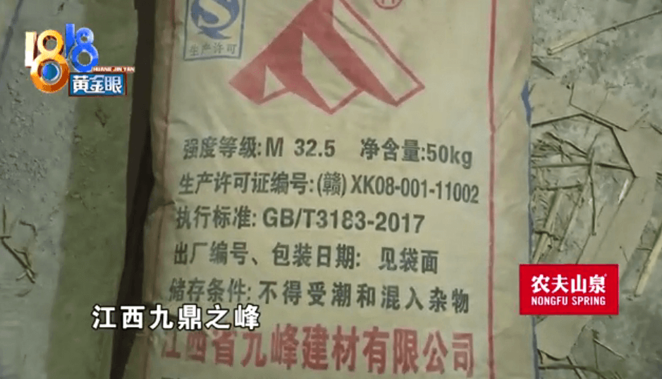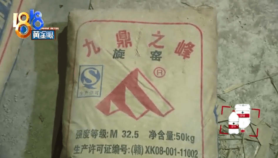 水泥是用在整棟樓的外墻,以及三樓、頂樓的內墻。水泥是江西上饒市“九鼎之峰”品牌。