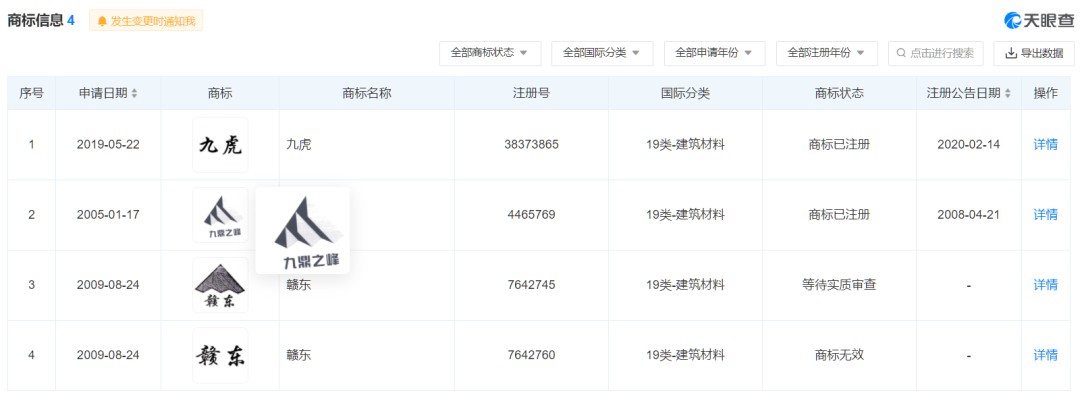 天眼查數據顯示,江西省九峰建材有限公司,成立于2003年12月19日,注冊資本為5000萬人民幣,法定代表人為吳旭江,經營狀態為存續,注冊地址為江西省上饒市玉山縣巖瑞鎮橫塘村,經營范圍包括許可項目:水泥生產。 企業擁有九虎、九鼎之峰、贛東等注冊商標。