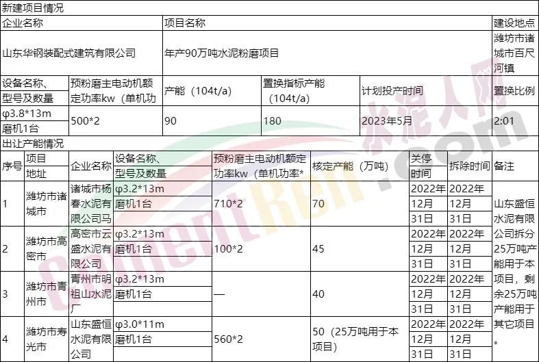 年產(chǎn)90萬噸水泥粉磨項目產(chǎn)能置換情況表