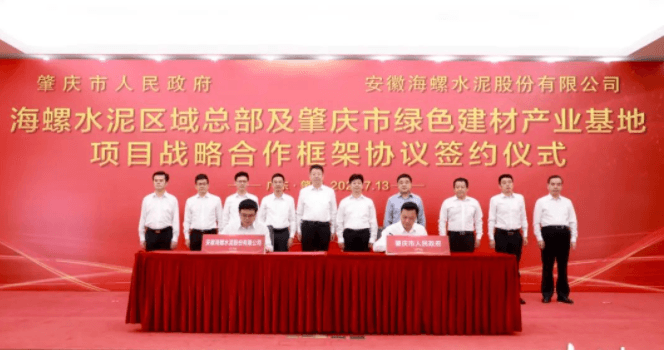2021年7月13日,肇慶市與安徽海螺水泥股份有限公司簽訂海螺水泥區(qū)域總部及肇慶市綠色建材產(chǎn)業(yè)基地項目戰(zhàn)略合作框架協(xié)議,雙方將在綠色建材產(chǎn)然后業(yè)等領(lǐng)域開展全面深化合作,共同打造國內(nèi)一流的新型建材領(lǐng)域科技創(chuàng)新和產(chǎn)業(yè)發(fā)展平臺。