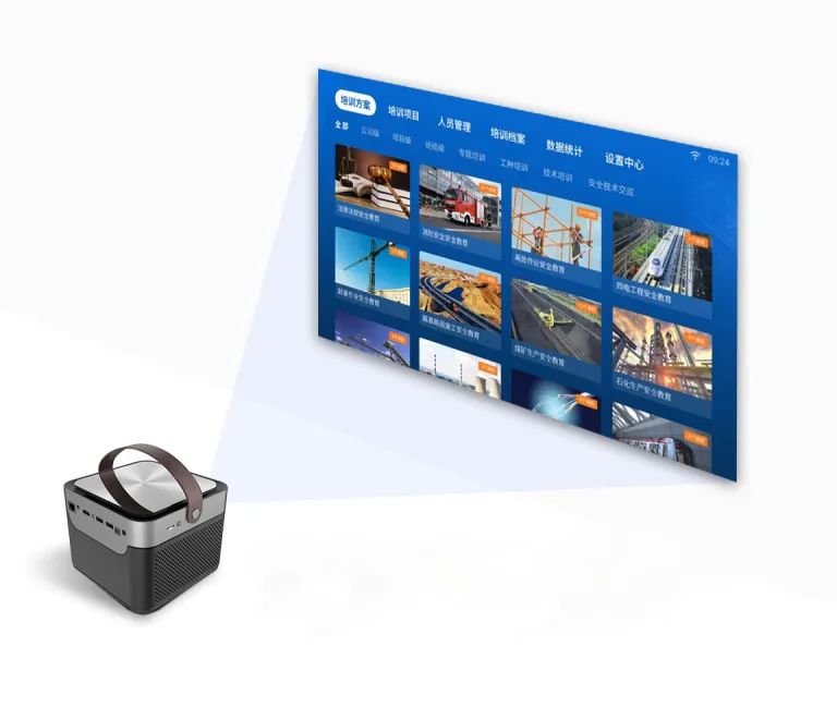 安培魔盒是一款解決企業安全教育培訓難題的移動智能終端,其自帶投影,體積小巧輕便,內置成體系的安全培訓課程和安全培訓管理系統,安管人員通過它可隨時隨地開展一次規范的安全教育培訓,涵蓋掃碼考勤、多媒體培訓、手機考試、自動歸檔全過程,全面解決企業培訓組織難、考核閱卷難和檔案整理難等問題,讓企業輕輕松松開展安全培訓工作,減輕安管人員培訓工作量。