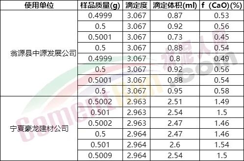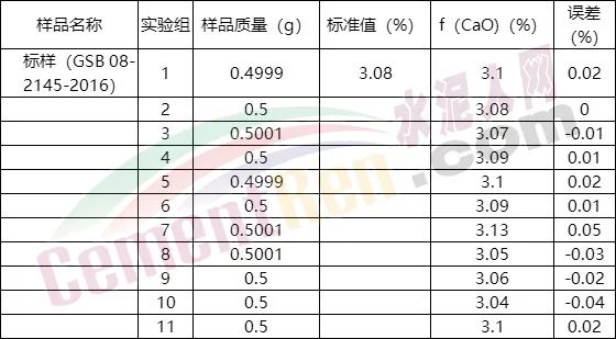 標(biāo)樣fCaO數(shù)據(jù)對比表