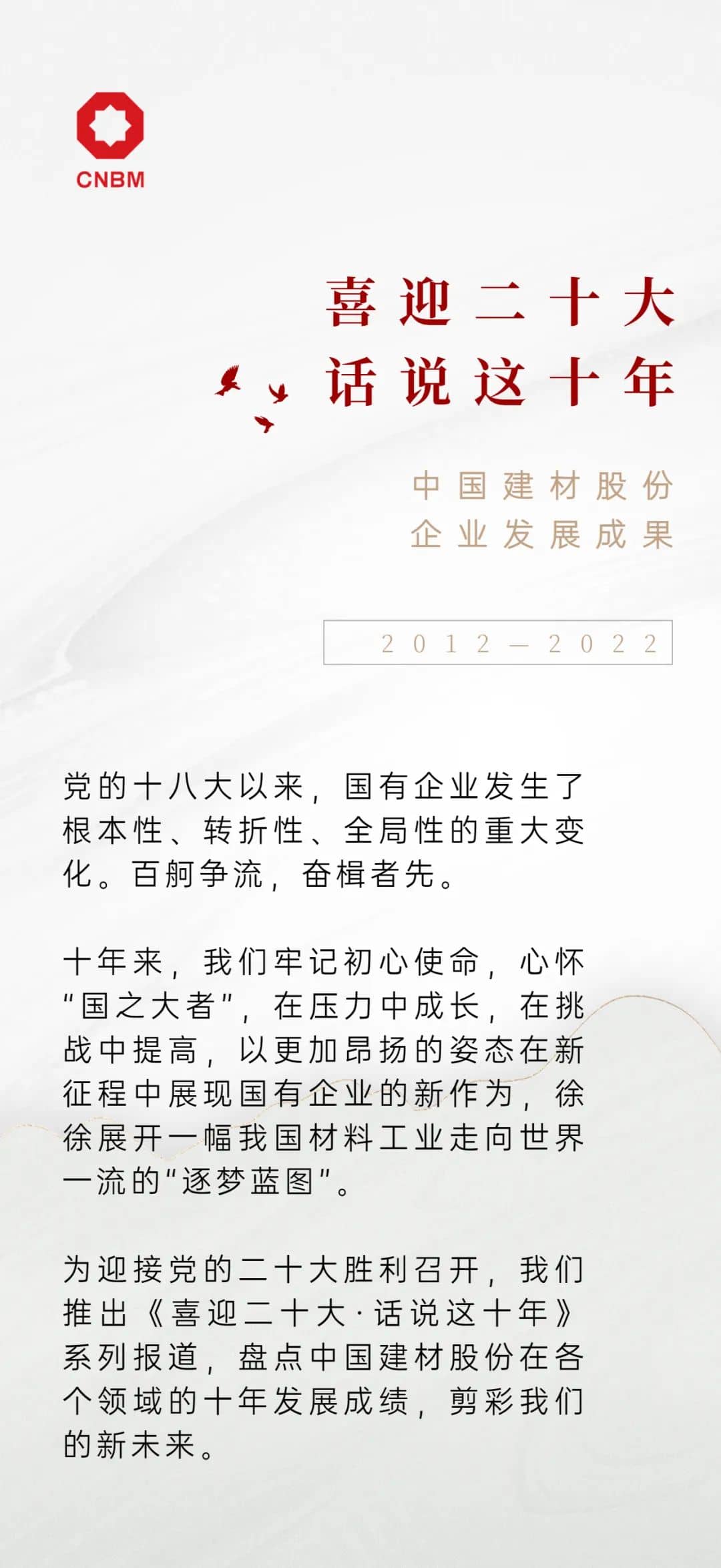 十年間,優勢業務持續鞏固領先地位,現擁有石膏板產能33億平方米、玻璃纖維產能359萬噸、風電葉片產能20GW、鋰電池隔膜產能13億平米。碳纖維、石墨等戰略性、前瞻性新材料布局加快:2021年9月,中國首條萬噸碳纖維生產線在青海西寧投產;2022年4月,中復神鷹登陸科創板;2022年9月,中建材黑龍江石墨新材正式揭牌……一批新材料新技術廣泛用于航空航天、艦船、核工業等國家重大工程項目,服務于水電站、核電站、通訊、交通等重大工程,還面向國民經濟主戰場,飛入尋常百姓家。