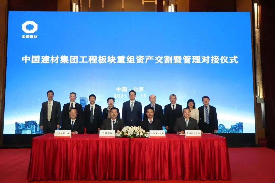 2021年10月19日,中國建材舉行工程板塊重組資產交割暨管理對接儀式。4家公司重組以后,將有效實現工程技術服務產業鏈、供應鏈、價值鏈的共建互融,擴大中材國際在水泥及礦業領域的業務規模、全球競爭力和品牌影響力。