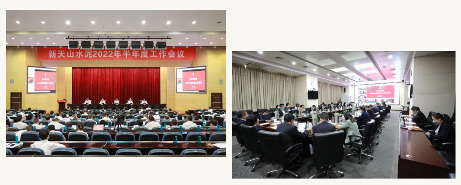 左圖為新天山水泥2022年半年度工作會議,右圖為新天山水泥業務整合階段性工作匯報會議。