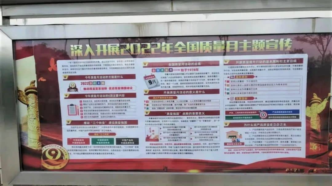 為加大“質量月”的宣傳力度,營造濃厚的質量月氛圍,區域所屬各公司充分利用電子屏、宣傳欄、宣傳海報等形式,在廠區重點區域懸掛橫幅,利用顯示屏循環播放質量活動月相關宣傳視頻,生產現場設立宣傳展板,向職工發放宣傳資料,不斷加大宣傳力度,營造人人知曉的宣傳氛圍,全方位對職工進行覆蓋式質量意識教育,為公司高質量發展夯實基礎。