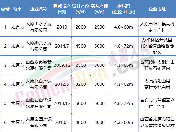 水泥熟料生產線清單