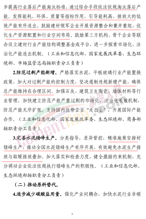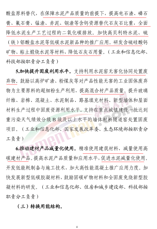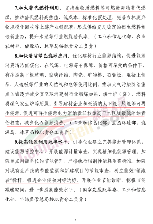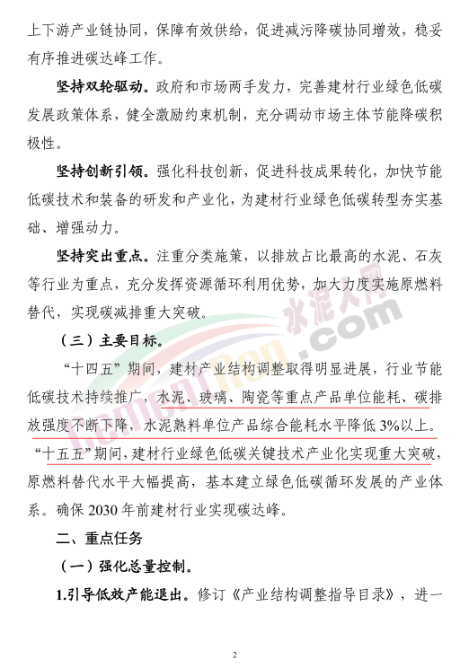 工業(yè)和信息化部、國(guó)家發(fā)展和改革委員會(huì)、生態(tài)環(huán)境部、住房和城鄉(xiāng)建設(shè)部等四部門(mén)聯(lián)合印發(fā)《建材行業(yè)碳達(dá)峰實(shí)施方案》,方案提出“十四五”期間,建材產(chǎn)業(yè)結(jié)構(gòu)調(diào)整取得明顯進(jìn)展,行業(yè)節(jié)能低碳技術(shù)持續(xù)推廣,水泥、玻璃、陶瓷等重點(diǎn)產(chǎn)品單位能耗、碳排放強(qiáng)度不斷下降,水泥熟料單位產(chǎn)品綜合能耗水平降低3%以上。“十五五”期間,建材行業(yè)綠色低碳關(guān)鍵技術(shù)產(chǎn)業(yè)化實(shí)現(xiàn)重大突破,原燃料替代水平大幅提高,基本建立綠色低碳循環(huán)發(fā)展的產(chǎn)業(yè)體系。確保2030年前建材行業(yè)實(shí)現(xiàn)碳達(dá)峰。