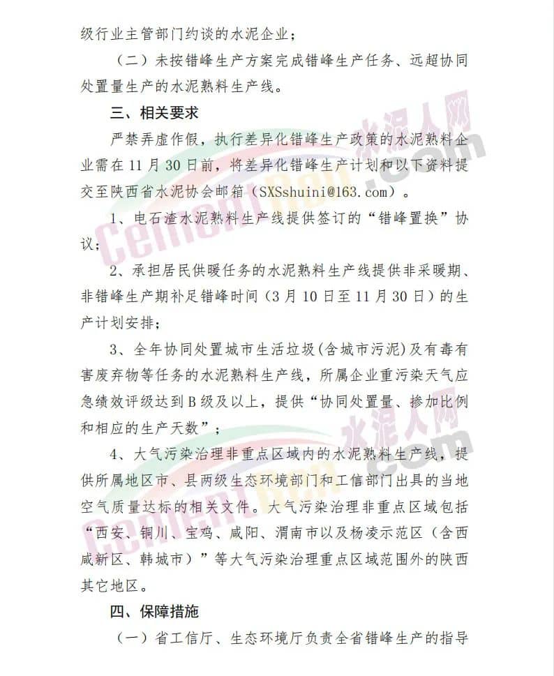(二)承擔(dān)居民供暖任務(wù)的水泥熟料生產(chǎn)線可不進(jìn)行錯(cuò)峰生產(chǎn),但需在非采暖季、非錯(cuò)峰生產(chǎn)期間補(bǔ)足錯(cuò)峰時(shí)間;