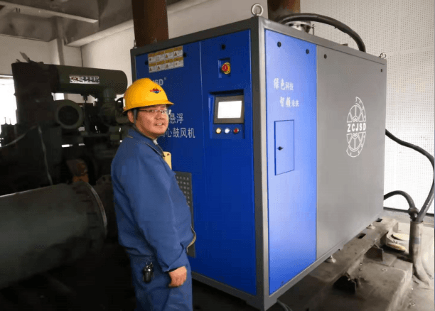 其研發生產的空氣懸浮離心風機擁有自主知識產權和動壓空氣軸承、高速永磁電機、高效氣動系統、智能控制策略四大核心技術,具有高耐久、壽命長、高效節能、靜音等優勢,核心機免維護,無油污,無污染,更節能,比傳統羅茨風機節能25%—35%,比多級離心風機節能15%—20%。為客戶大大節省能源和日常維護費用,受到了很多企業的青睞,已在多家水泥廠投入應用。