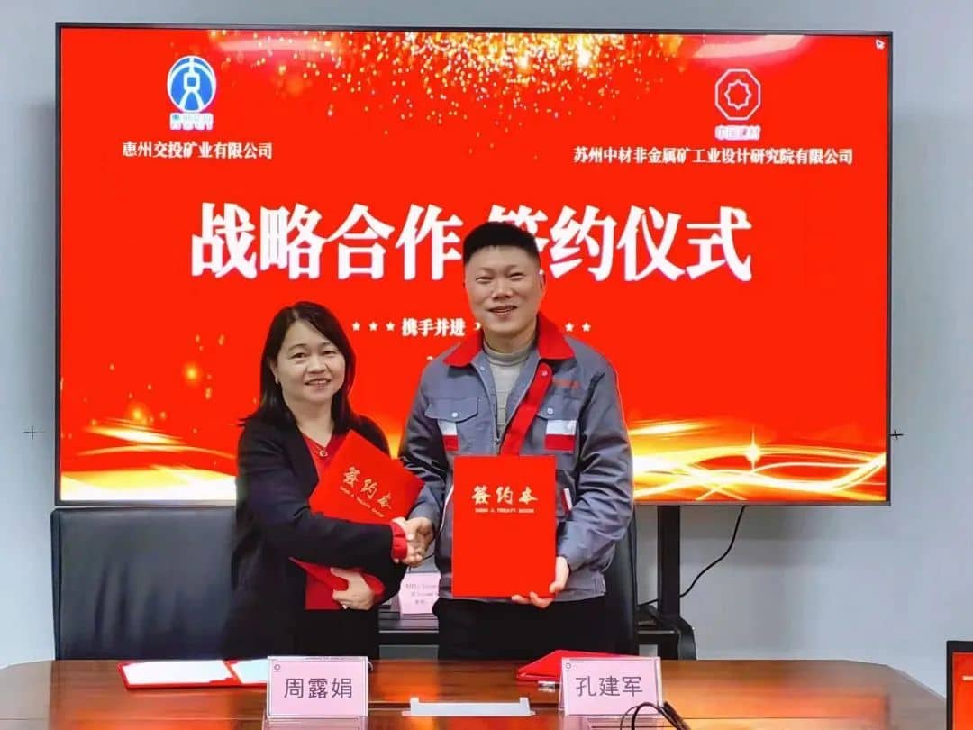 近日,惠州交投礦業有限公司(以下簡稱“交投礦業”)分別與中材礦山建設有限公司(以下簡稱“中材礦山”)和蘇州中材非金屬礦工業設計研究院有限公司(以下簡稱“蘇州非礦院”)正式簽訂戰略合作協議。