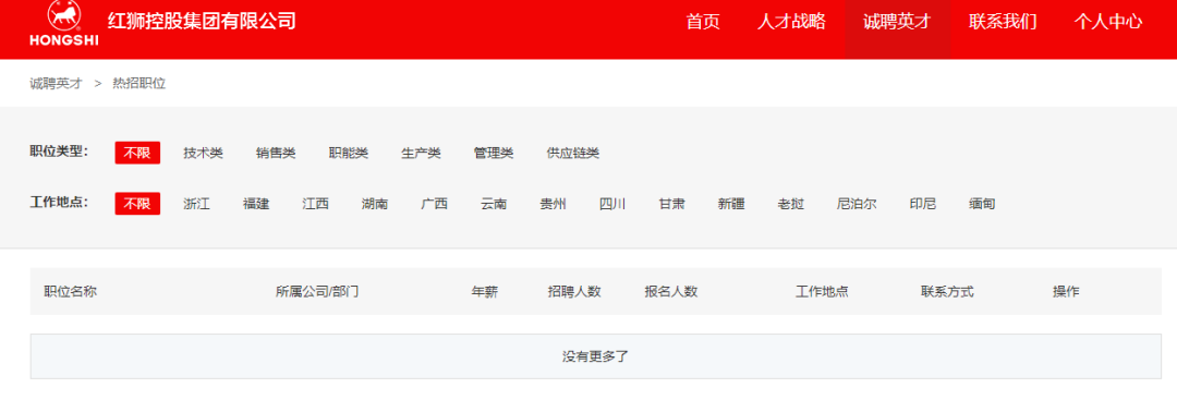 與此同時,國內水泥行業各大企業也減少了部分崗位的招聘。紅獅集團官網誠聘英才欄,招聘職位“全無”。