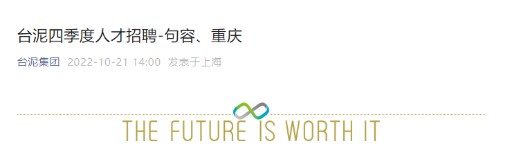 臺泥集團人才招募頻道也最近更新的消息是2022年四季度句容臺泥招聘化學分析技術員、車輛工程技術員,重慶臺泥招聘DCS技術員、工藝技術員四個崗位。