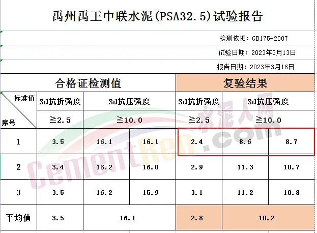 日前,河南省南陽市某建材門市向水泥人網(wǎng)反映:“許昌禹州禹王中聯(lián)(PSA32.5)袋重不足,廠方所提供的質(zhì)量檢驗報告單與攪拌站所測數(shù)值,相差甚遠(yuǎn)”。