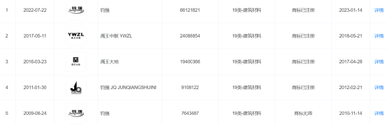 河南省鈞強(qiáng)水泥有限公司注冊商標(biāo)圖片當(dāng)前狀態(tài)為已注冊,有效期內(nèi)。且同時擁有“鈞強(qiáng)、禹王大地”等多個注冊商標(biāo)。