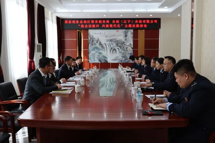 4月7日上午,在金隅冀東水泥遼寧區域黨委書記閆海峰帶領下,遼寧臺泥項目托管組負責人孔建平、公司副總經理李震、財務總監楊立國、財務經理陳軍劍、辦公室主任秦雙江等黨員干部一行6人走進燈塔市稅務局,共同開展 “稅企話振興 共建現代化” 支部共建活動。燈塔市稅務局黨委書記、局長韓云玲、紀檢組組長陳震、副局長張毅、高東雯等相關部門負責人參加了此次活動。