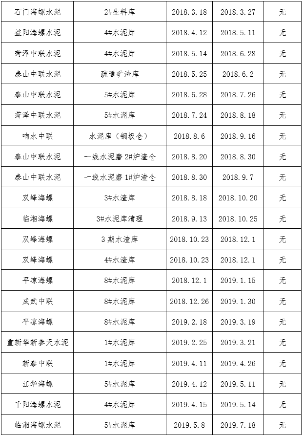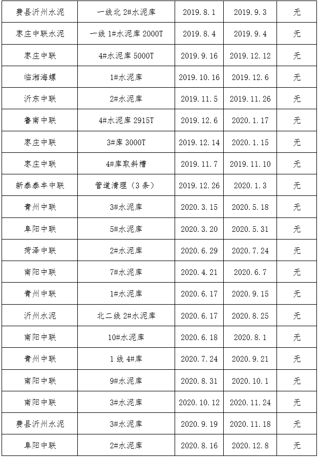在清庫作業全部結束并驗收合格后,施工方應依照水泥企業相關要求,恢復所有技改項目,尤其要密封各部位孔門,避免出現漏水情況,造成后期儲存庫使用周期縮減。在施工過程中一定要避免開孔等一切破壞儲存庫原始結構的作業,尤其是磚混結構的庫型,鋼板倉要格外注意焊縫、材料應力等問題。