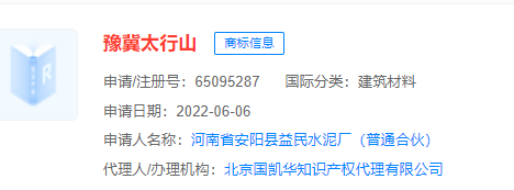 據市場反饋,來自河南安陽區域的兩個品牌在邯鄲武安流通市場也有出現。“豫冀太行山”品牌,申請人為河南省安陽縣益民水泥廠,目前狀態為初審公告階段。