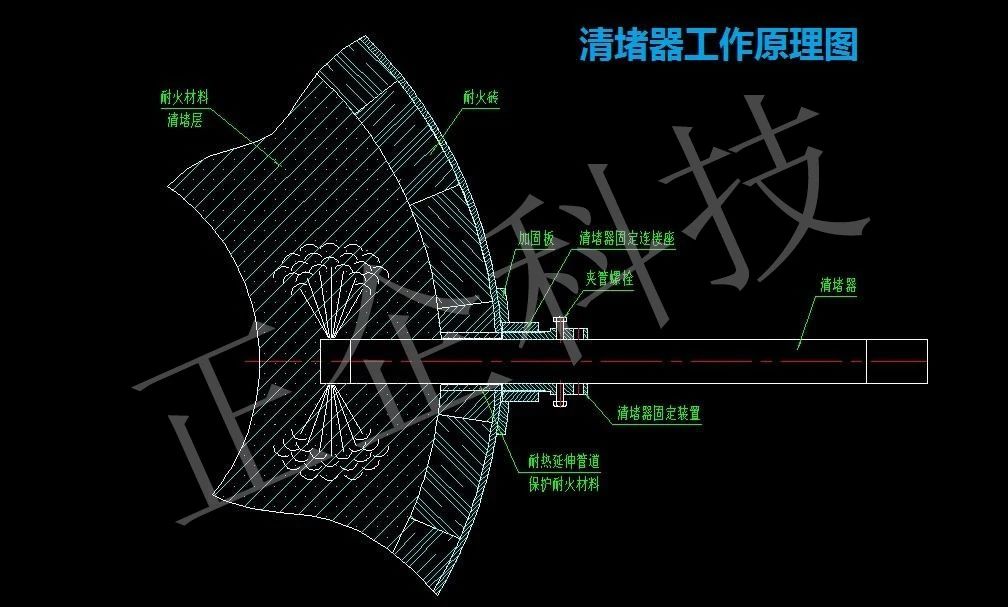 據悉,這兩家水泥企業使用的熱能膨脹清堵技術由山東正企工礦機電科技有限公司(以下簡稱“山東正企”)自主研發生產。據山東正企總經理許貫民介紹,熱能膨脹清堵技術可用于分解爐頂部的結皮清理,窯尾篦冷機“雪人”的在線清除,燃燒器頭部出現的結焦、預熱器管道結皮及管道堵塞、對料庫的拱形、爐璧形、橋形、漏斗形板結能夠有效的快速清理。山東正企熱能膨脹清堵技術針對水泥庫電石渣廢料產生的乙炔氣體爆炸問題能夠安全的進行料庫清理,這項技術的應用屬國內首創。該技術具有超強的耐高溫特性,可在設備內部1200°的高溫下實施在線清除,替代了水槍等危險的作業工具,不需要停機冷卻就能快速處理結皮和堵料。
