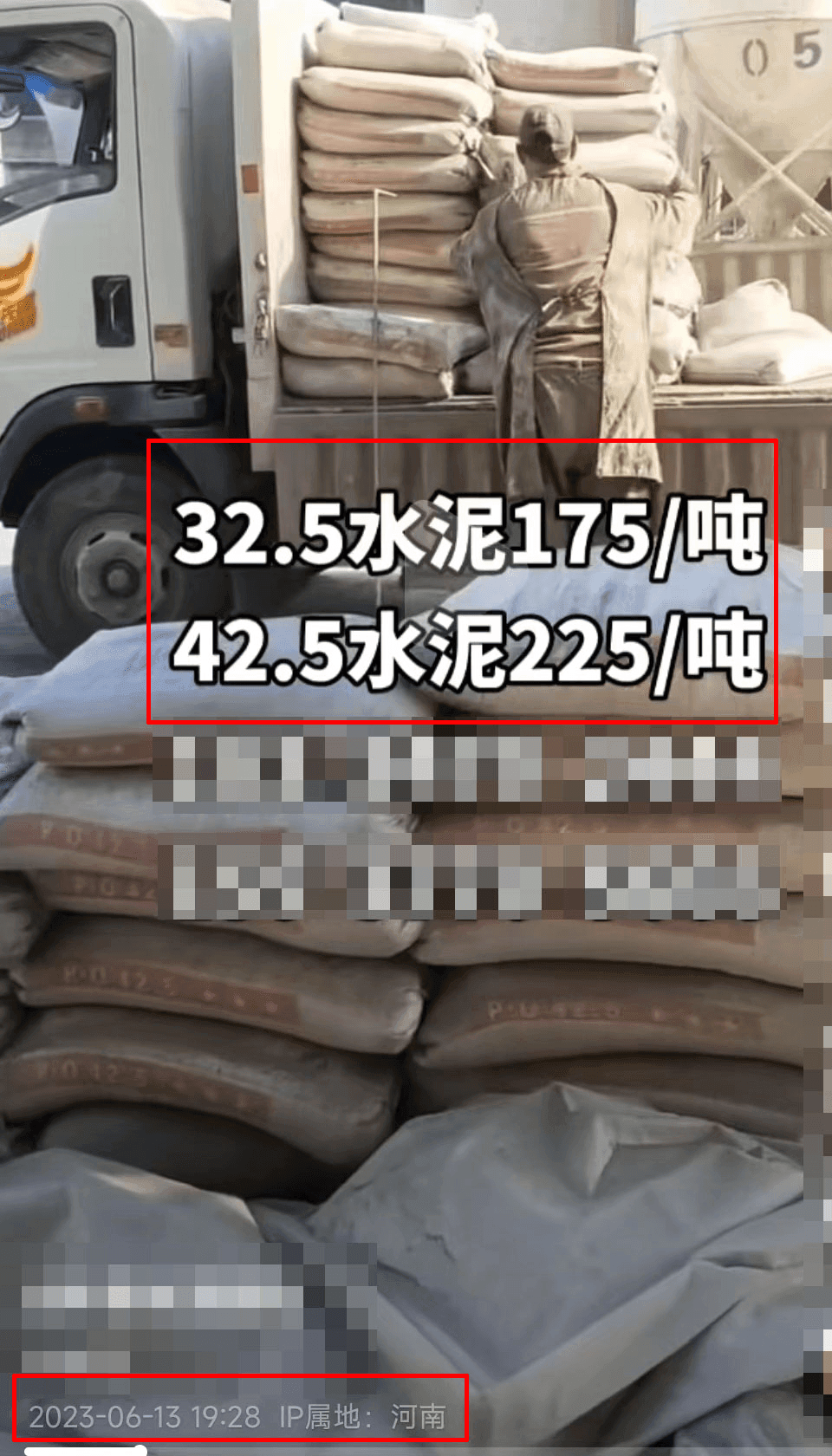 6月13日河南新鄉一經銷商32.5水泥報價175元/噸,42.5水泥報價225元/噸。
