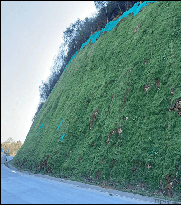 ②山體高陡堅硬,路基最大開挖高度54m,設計路面標高落差155.03m;
