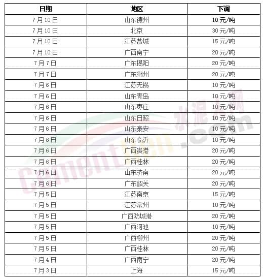 另據(jù)了解,進(jìn)入7月,山東、江蘇、廣東、廣西等多區(qū)域水泥市場仍處于下行趨勢,各企業(yè)報(bào)價(jià)低仍持續(xù)下跌中。