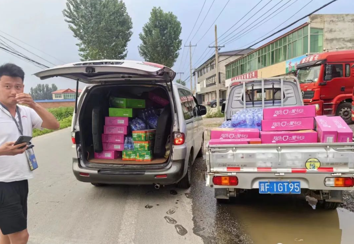8月2日下午16時,唐山金馬啟新水泥有限公司的救援物資送到了涿州市林家囤鎮西管頭村。