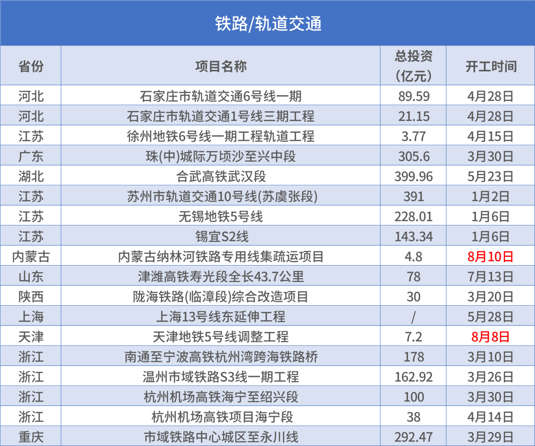 據不完全統計今年1月-8月末全國共有7914個重大基建項目開工,累計總投資達56953.3億元。