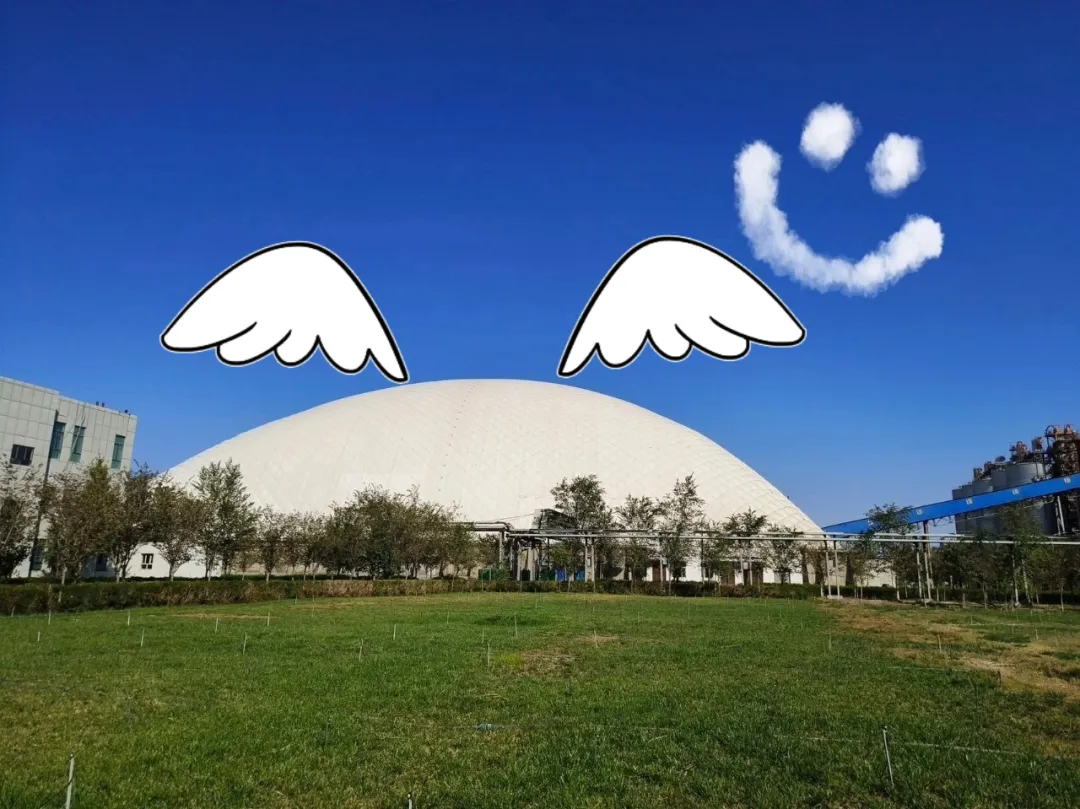 它像一個巨大的透明氣泡,輕盈的懸浮在地面上——它是坐落在阜康天山水泥公司東北側的熟料氣膜大棚。它為傳統露天堆場加上“蓋兒”,既能避免下雨時物料被淋濕,也能防止粉塵污染,是節能環保的舉措之一。