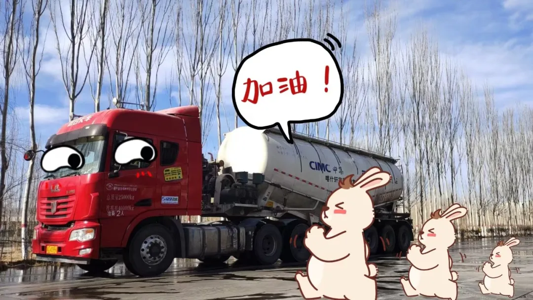 我是來自喀和銷售分公司的水泥運輸車,我的口號是:按時發車,一路前行,風里雨里只為你。